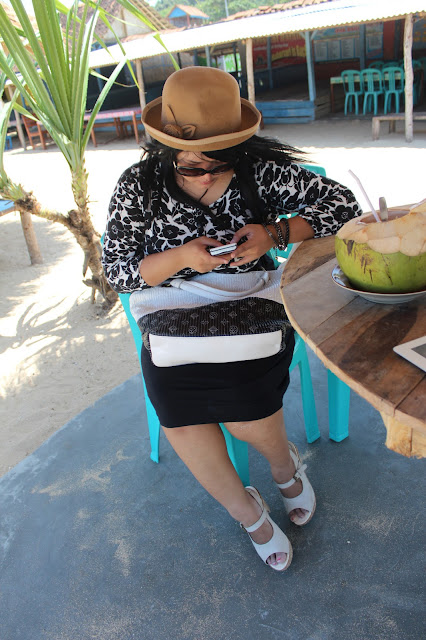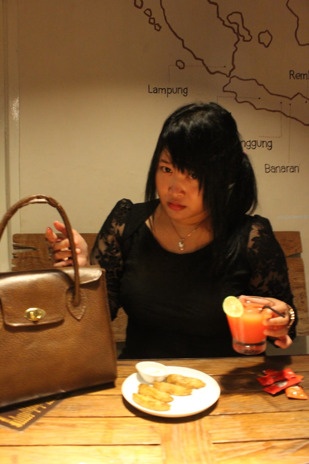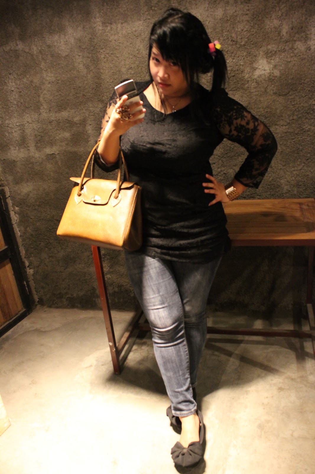 I wore my lovely black and white mini dress and borrowed my Mom's bag. And Cinta wore her polka dress. She looked so beautiful. We took pictures and enjoyed the sunlight.